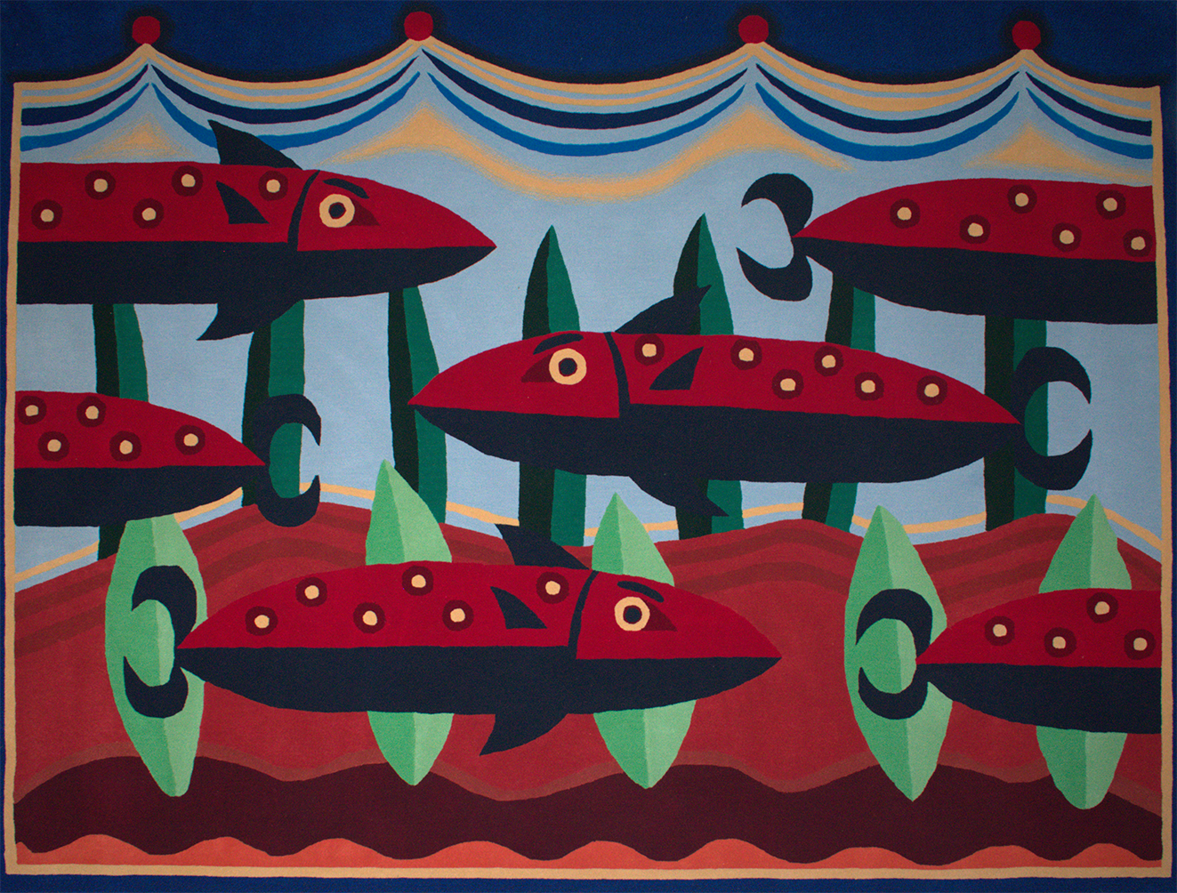 Graham’s interest in different manufacturing processes included a host of rugs made by the Dixon Carpet Company (formerly V’Soske Joyce) with designs by Knuttel. The colours were fabulously vivid - fiery scarlets, canary yellows and electric blues vied for your attention. It felt almost like a crime to stand on them, though the sumptuous pile made you think you are walking on air. Most were destined to be hung on proud owners’ walls though Knuttel didn’t mind if they were used as carpets. Knuttel would usually add the caveat that none of them “would last 10 minutes as a carpet in my house”.